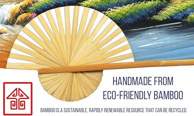 - 🌏 HANDMADE & EARTH-FRIENDLY - Our folding wall fans are made of sustainable bamboo grown in Thailand and crafted by hand by Thai artisans. Bamboo is easy to harvest, making it a perfect eco-friendly and renewable material. For thousand years, it has been widely used by artisans to make home furniture and accessories, including decorative wall hangings and decoration.