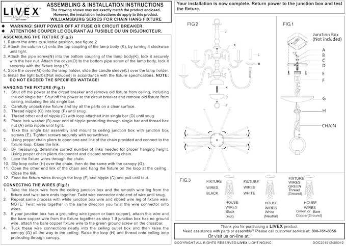 Livex Lighting 5006-03 Williamsburgh 6-Light Chandelier, White