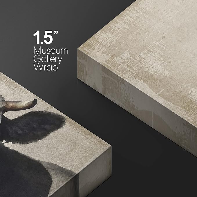 wall26 Canvas Print Wall Art Black & White Cow Portrait on Grunge Background Animals Wildlife Digital Art Realism Rustic Scenic Nature Photography Colorful for Living Room, Bedroom, Office - 24"x36"