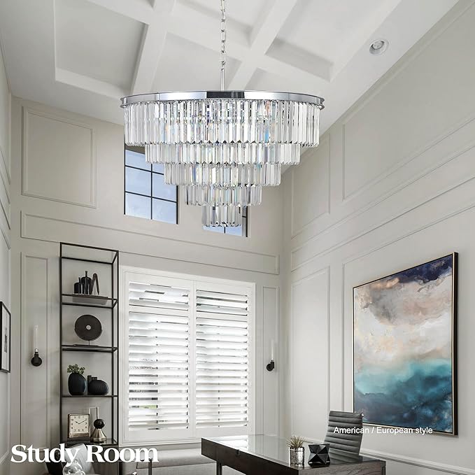 - 【LUXURY CRYSTAL CHANDELIER】MEELIGHTING chandelier is made of high quality metal iron, exquisite chrome painting, smooth and no paint peeling.This chandelier is 5-Tiers 16 lights design frame to create a very elegant look at your home, simple design but it will be never out of date.Ideal for dining room, living room, bedroom, foyer, kitchen, staircase, home office,study room,hotel,cafe, etc