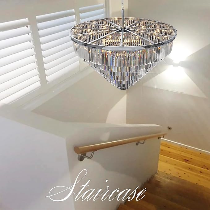 - 【Luxury Modern Design Fusion】MEELIGHTING 7-Tier Large crystal chandelier is an elegant pendant light with a contemporary look that will add modern style to your home decor. Its three tiers provide ample warm, welcoming illumination. The sturdy frame ensures durability. The K9 crystals hang around the frame, forming a tapered shade; each crystal has a thick triangular profile for maximum refraction and reflection, enhancing its visual depth and artistry even further.