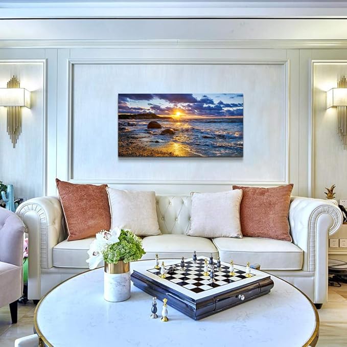 canvas wall art for living room bedroom Wall Decor blue ocean landscape painting Hang Home Decoration office bathroom kitchen sun beach sea golden Waves on the beach canvas art Prints pictures Works