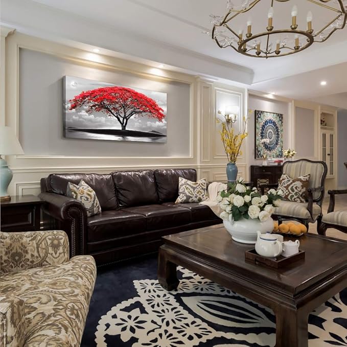 canvas wall art for living room bathroom Wall Decor Black and white landscape red tree moon scenery Hang painting Home Decorations for office bedroom kitchen Works canvas Prints pictures 24" x 48"inch