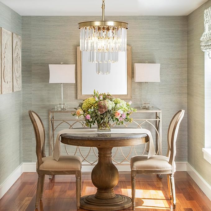 - 【LUXURY CRYSTAL CHANDELIER】MEELIGHTING chandelier is made of high quality metal iron, exquisite gold painting, smooth and no paint peeling.This chandelier is 3-Tiers 4 lights design frame to create a very elegant look at your home, simple design but it will be never out of date.Ideal for dining room, living room, bedroom, foyer, kitchen, staircase, home office,study room,hotel,cafe, etc