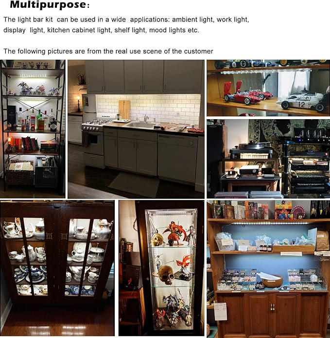 - Wide Application. Suitable for home and commercial use. Can be used as under cabinet & counter lighting, under closet lighting, shelf light, work table light, artwork lighting etc.