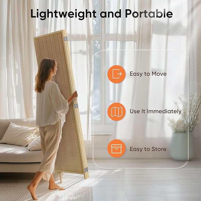 - 【Room Dividers and Folding Privacy Screens, Natural Material for Worry-Free Use】The room divider are handmade by professional worker, using the quality of bamboo and wood as raw material, the product is environment-friendly, which is clean, without smell and avirulent. Our room divider fits for room as well.