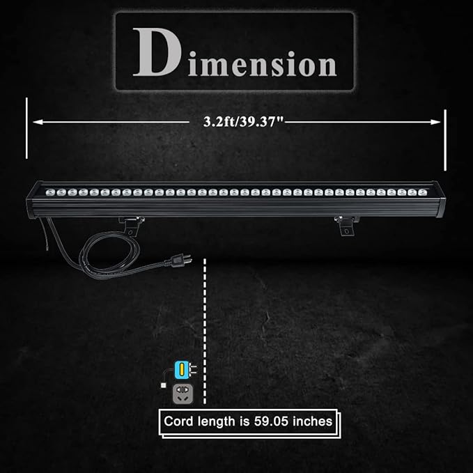 Wall Washer LED Lights,108W RGBW Color Changing LED Strip Lights with RF Remote,120V, 3.2ft/40 "Linear RGB LED Lights Bar for Outdoor/Indoor Lighting Projects Carnival Party Stage Bar Decor