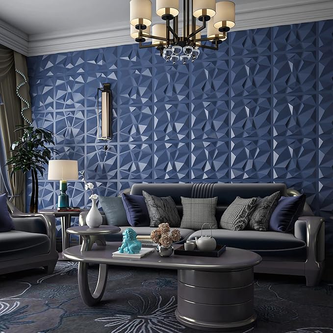 Art3d 19.7in x 19.7in (Pack Of 12) Wall Panel Diamond, Blue
