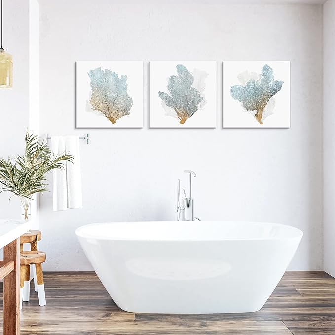 JAPO ART Delicate Coral by PI Creative Art Modern Ocean Marine Animal Wall Pictures Vintage Giclee Print on Canvas Stretched for Living Room Bedroom 12 x 12 inch x 3 pcs