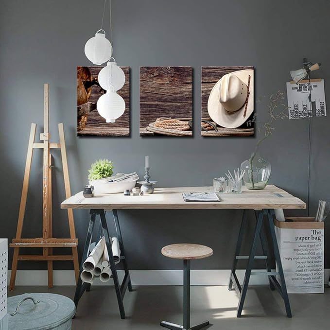 Canvas Print Wall Art Decor Western Cowboy Wall Art American Cowboy Hat Boots West Rodeo Vintage Picture Stretched Gallery Canvas Wrap Giclee Print Ready to Hang for Home Office Living Room
