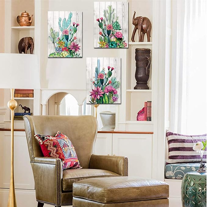 - Cactus Wall Art SIZE:each panel 16x24,total 3 panels,tropical plants themed canvas prints, modern wall decor.