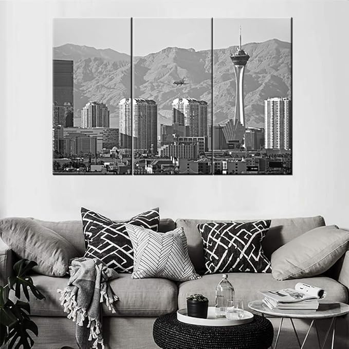 3 Pieces Canvas Wall Art for Men & Women, Modern Las Vegas City Skyline Print Photograph, Hanging Decorative Painting Artwork for Kitchen, Bedroom, Office, Living Room, Home Decor Gift 28‘’ x 42‘’