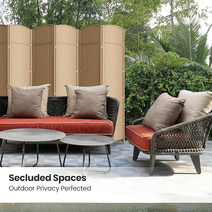 8 Panel Room Divider,6Ft Folding Privacy Screen,Tall - Extra Wide Foldable Panel Partition Wall Divider with Diamond Double-Weaved Hand-Woven Design Room Screen Divider