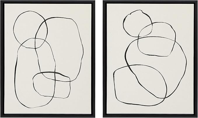 Kate and Laurel Sylvie Modern Circles and Going in Circles Framed Linen Textured Canvas Wall Art by Teju Reval, 2 Piece 18x24 Minimalist Abstract Black