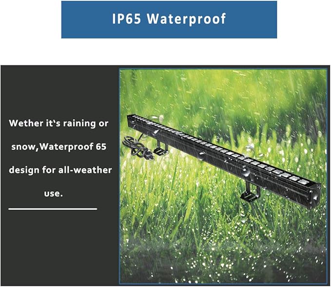 - ☔WATERPROOF & UPGRADED DESIGN-①The LED wall washer light bar add a Waterproof Breather Valve to avoid the issue of moisture inside the lens. Safety and favorable waterproof effect. Excellent heat dissipation.② The Professional IP65 waterproof. Even on rainy days the wall washer LED lamp can light your garden, yard, Art Display, garage, building, front doors, backyards, walls, etc.