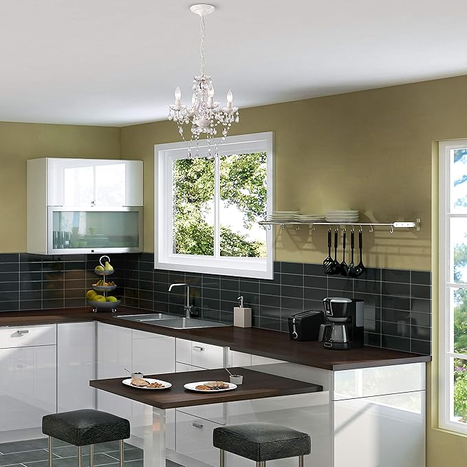- ACRYLIC CRYSTALS BETTER THAN GLASS: Glass crystals break easily, are heavy, require a lot of packaging and need to be assembled one crystal at a time. we use poly-carbonate (PC) crystals which is the same material as bullet proof windows and eye lenses, THIS WHITE PENDANT LIGHT VERY STRONG & LIGHT WEIGHT.