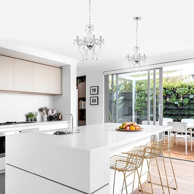 - Chrome Chandelier Crystals Easy to Match: This crystal chandelier is easy to match, the retro design can easily be integrated into your room, it is a ideal hanging light, hang this mini chandelier in your halls, entrances, stairwells, dining room, Kitchen island and bedroom.