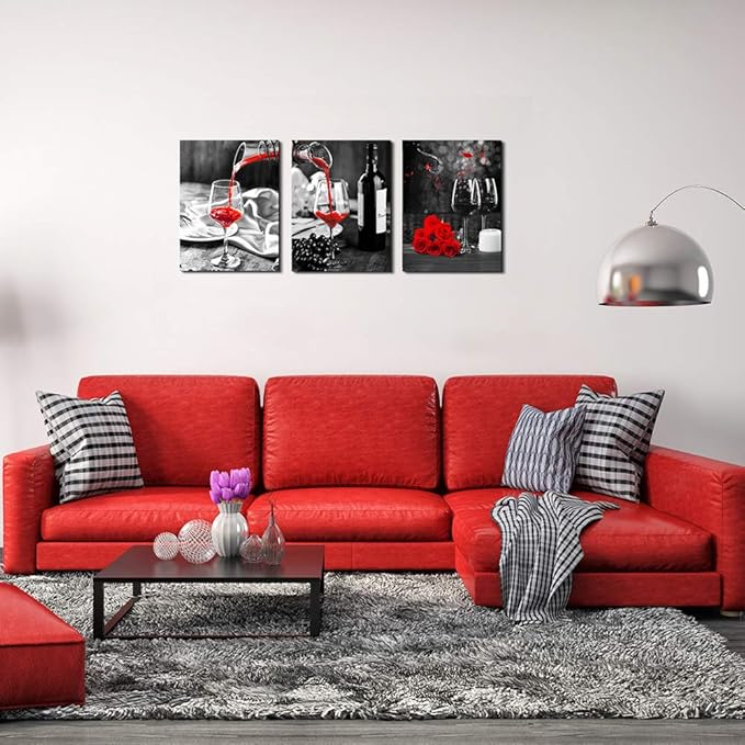 Kitchen Wall Art For Dining Room Wall Decor Still Life Black And White Canvas Art Prints Wine Barrel Bar Red Rose Painting Modern Family Wall Decorations Restaurant Bedroom Decor Artwork 3 Piece Set