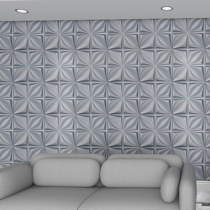 Art3d Matt Grey Silver 3D Wall Panel PVC Flower Design Cover 3 Sq Meter, for Interior Wall Decor in Living Room,Bedroom,Lobby,Office,Shopping Mall