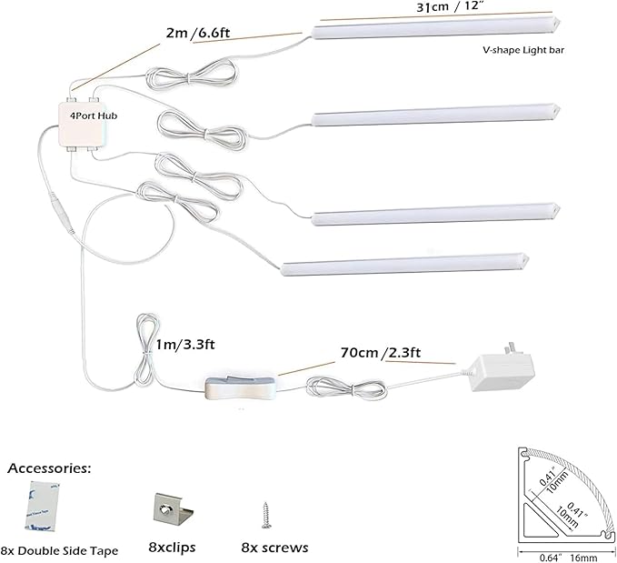 - ▶ V Shape Light Bars - :Aluminum extrusion profile with right angle for corner, Elegant and low profile for under cabinet corner.