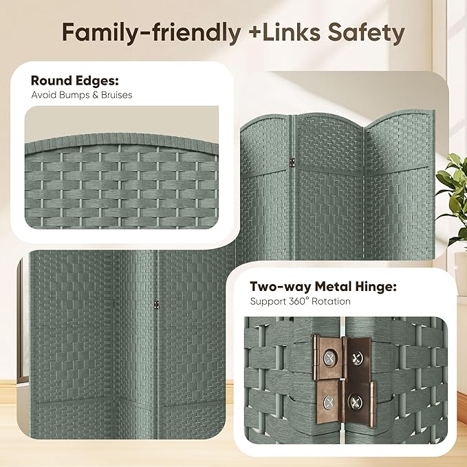 - 【Neutral Rattan for Any Decor】Clean woven texture complements modern, farmhouse, or office spaces. Decorative slim frame maintains minimalist room divider aesthetics while supporting indoor/outdoor versatility