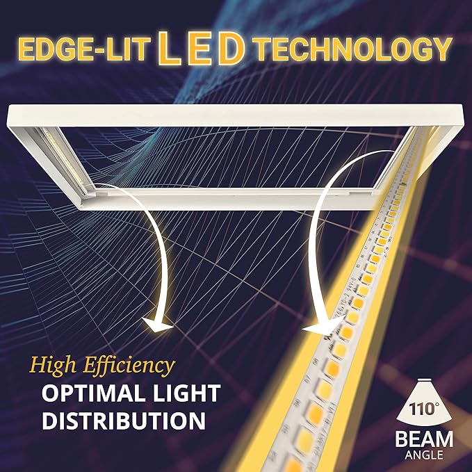 - CERTIFICATIONS & QUALITY – Certified by Energy Star, ETL, RoHS, and DLC, this LED panel light guarantees exceptional quality, performance, and energy efficiency. Each super bright LED panel is engineered for enduring safety and reliability, safeguarded against any material or workmanship defects. These certifications are instrumental in minimizing electricity consumption, and the need for replacements.