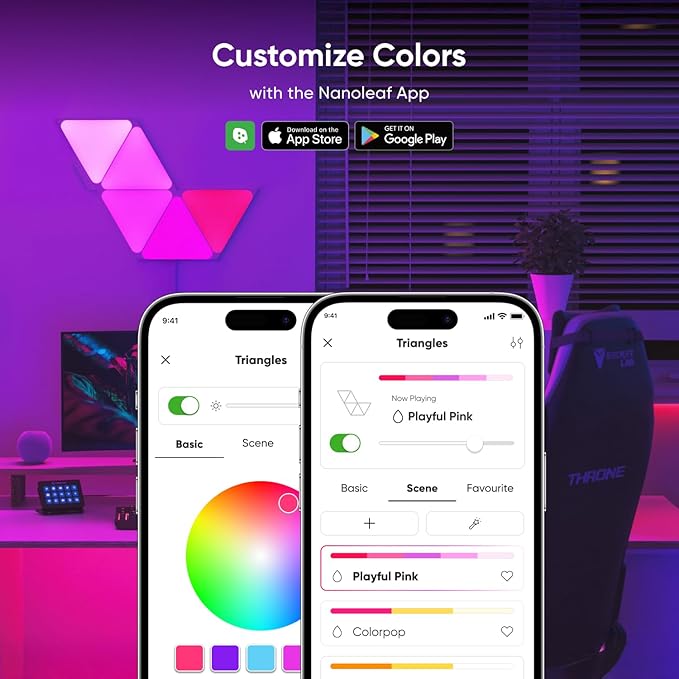 - [See Your Music Come to Life] Transform your favorite songs into dancing symphonies of color and light. Set how your lights react to music and sound in real-time with different Rhythm Scenes available on the Nanoleaf App.