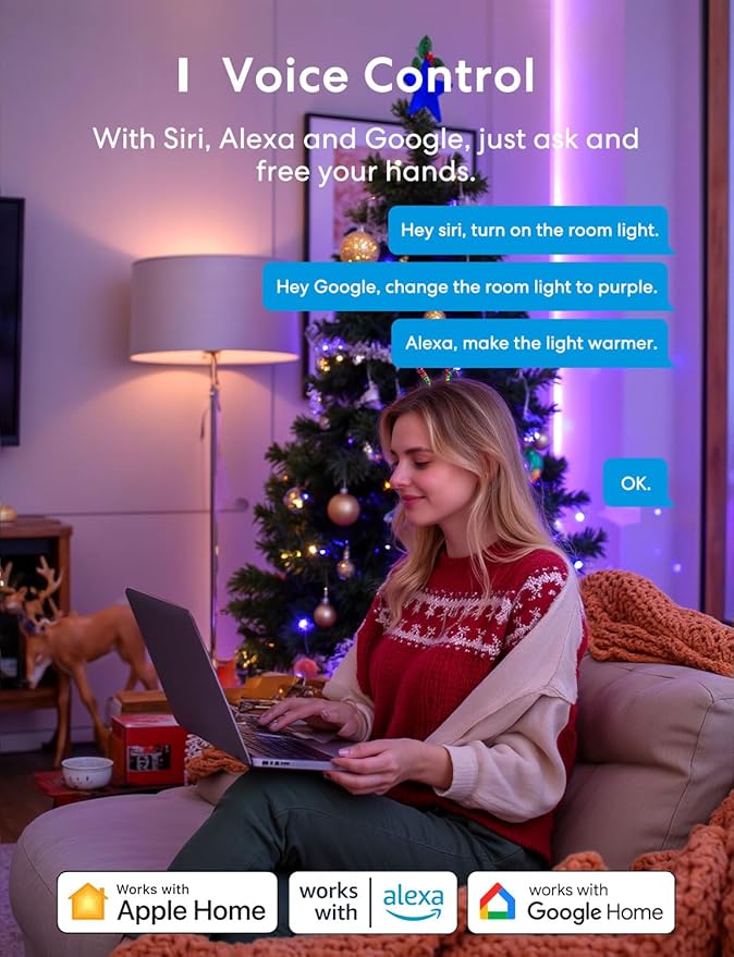 - Voice Control: meross smart light bulbs are compatible with Apple HomeKit, Apple Watch, Siri, Alexa Echo, Echo dot, and Google Assistant. Control your smart bulbs via voice command to turn on/off or dim/brighten your smart LED light effortlessly. (e.g. ‘Hey Siri, set the bedroom light to green’).