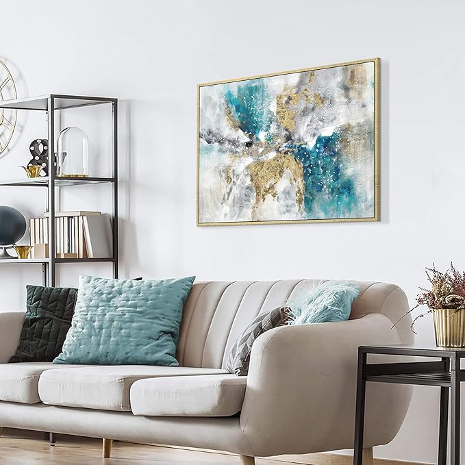 - Teal Abstract Wall Picture on Canvas: Blue wall art canvas painting is ready to hang right out of the box with wall mounting hardware included