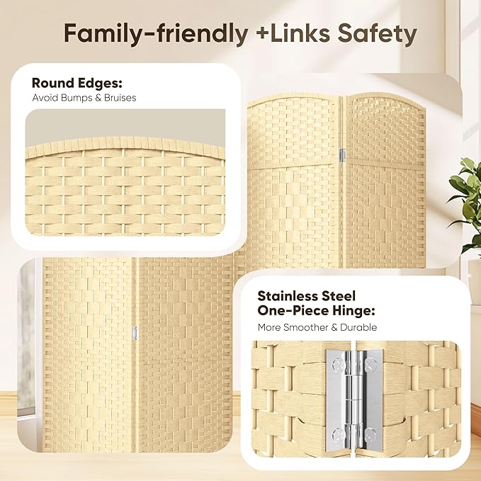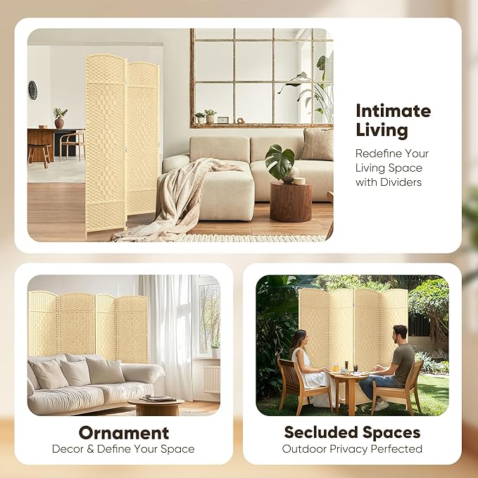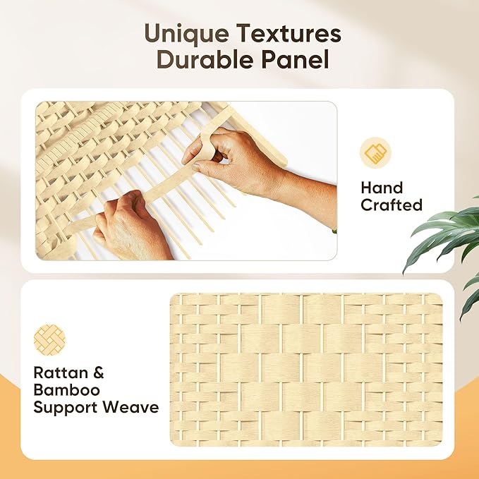 - 【Neutral Rattan for Any Decor】Clean woven texture complements modern, farmhouse, or office spaces. Decorative slim frame maintains minimalist room divider aesthetics while supporting indoor/outdoor versatility