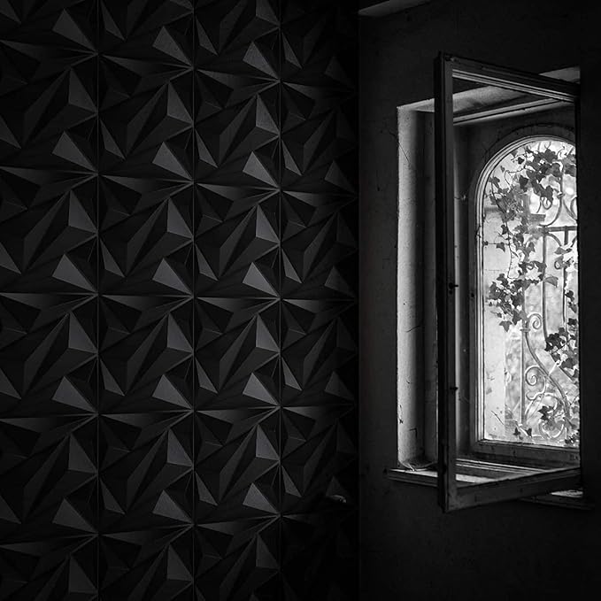Art3dwallpanels PVC 3D Wall Panel Diamond for Interior Wall Décor in Black, 19.7" x 19.7" Wall Decor PVC Panel, 3D Textured Wall Panels, Pack of 12 Tiles