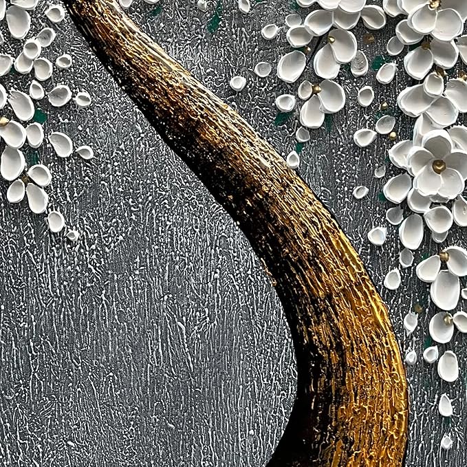100% Hand-Painted 3D White Vertical Abstract Flower Tree Painting, Canvas Texture Mural, Living Room, Bedroom, Dining Room Mural 24x48 inchs