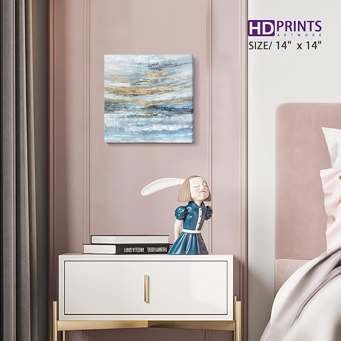Nicetop Bathroom Wall Art Abstract Canvas Art Print Modern Blue Ocean Picture Small Coastal Sunset & Sunrise Artwork for Sea Lake Themed Home Bedroom Décor 13.3x13.3inch