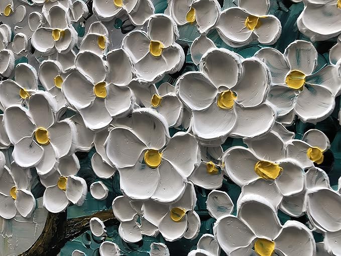 3D Abstract Art Oil Painting White Flower Tree Painting Textured Palette Knife White Flower Painting Modern Canvas Wall Art Home Decoration Home Painting (24x48 inches)
