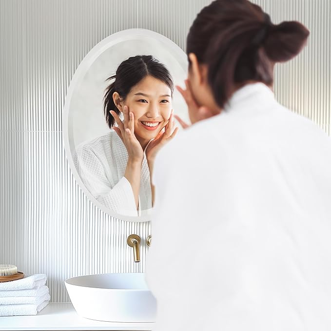- ½” wide oval wood frame with a front-mounted mirror that appears to float. 1" beveled distortion-free mirror for added depth and clarity