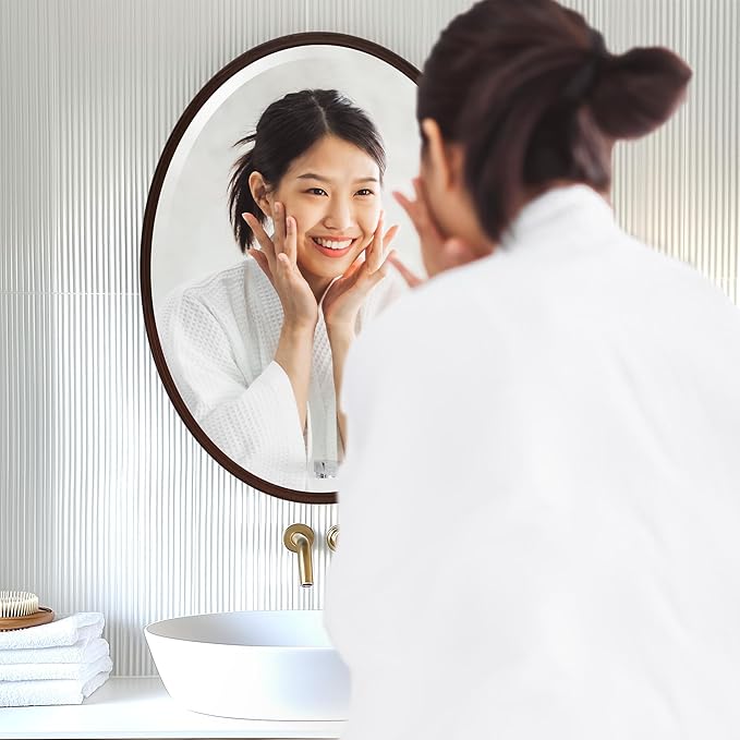 OVALCREST - Oval Wooden Beveled Wall Mirror for Home Decor, Bathroom, Vanity, Bedroom, Living Room, Hallway - London Style (Black Walnut) 17.1 x 13.1