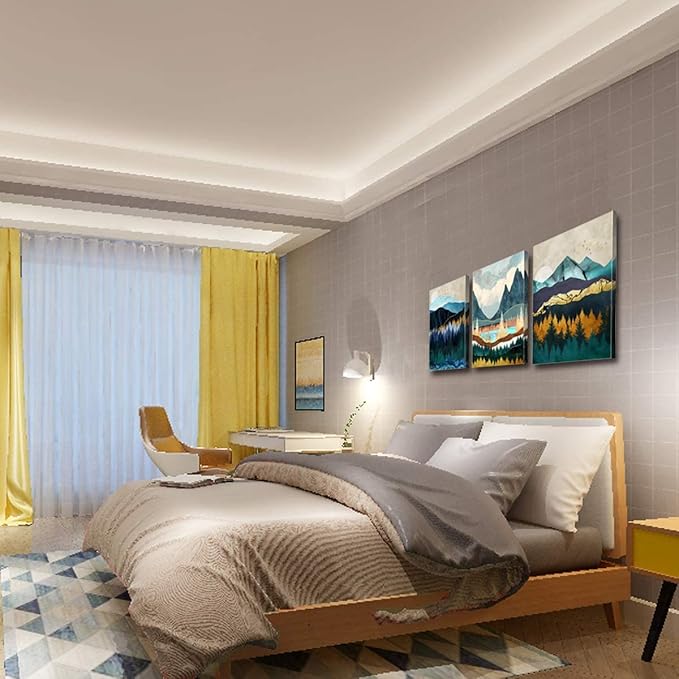 - 💙Abstract Mountain Canvas Wall Art Bedroom Decor Easy to hang: each panel of canvas prints already stretched on solid wooden frames, gallery wrapped, with hooks and accessories, ready to hang.