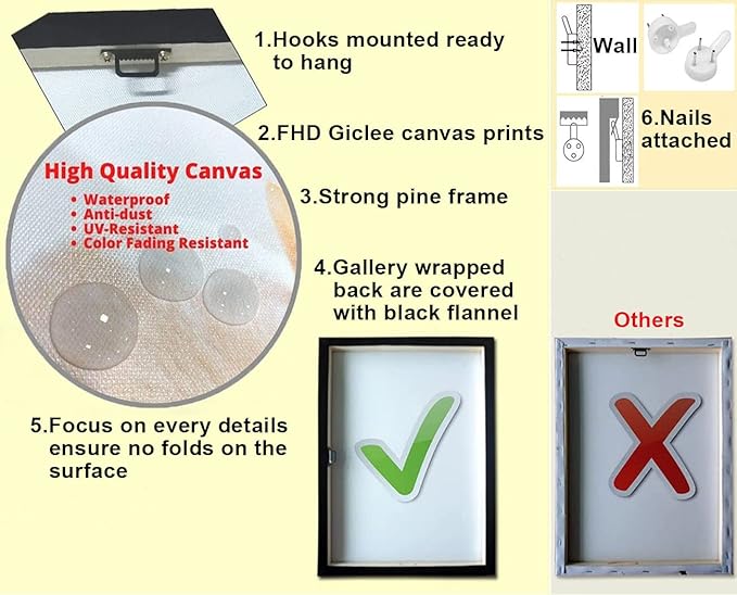 - Focus on Details: Every customer's profit we value, we check if the canvas front flat or not, if the border well wrapped up, make sure every wall decoration you received has no flaws
