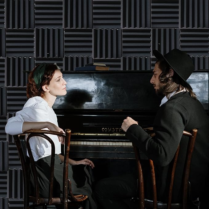 12-Pack Acoustic Panels, 2" x 12" x 12" Sound Proof Foam Panels for Wall,Fireproof Soundproofing Wedges,Noise Canceling Sound Absorbing Foam for Studio Recording, Home Office(Black)