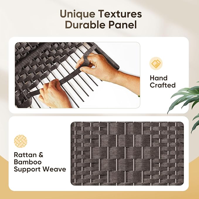 - 【Neutral Rattan for Any Decor】Clean woven texture complements modern, farmhouse, or office spaces. Decorative slim frame maintains minimalist room divider aesthetics while supporting indoor/outdoor versatility