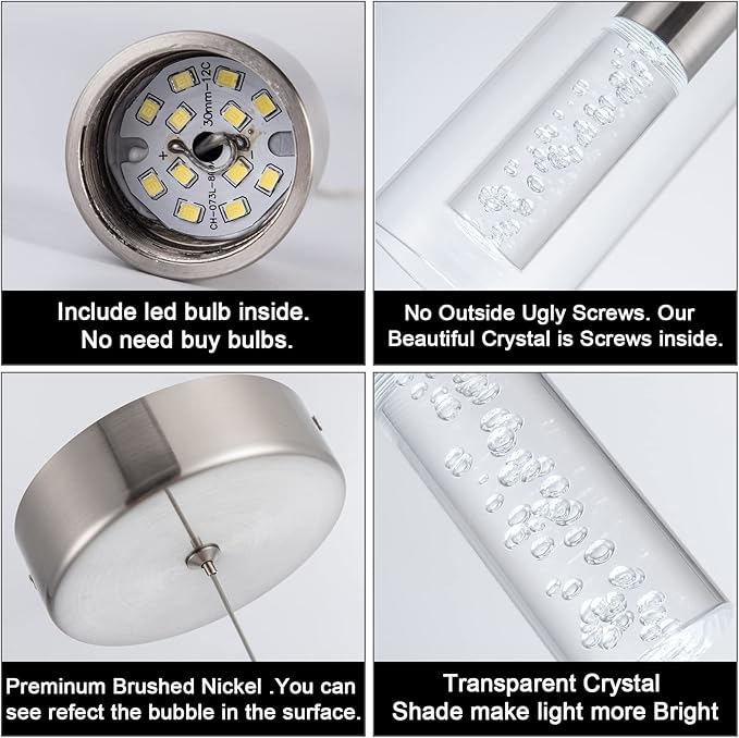 - Unique Design: The brushed nickel finish and bubble cylinder of our pendant lights kitchen island create a fashionable and elegant atmosphere, which can enhance the style of the room