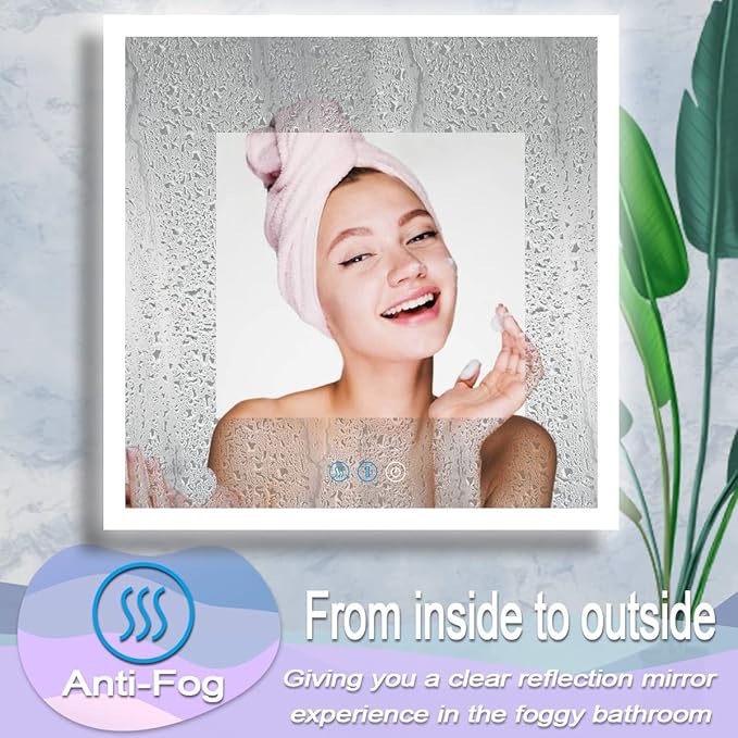 - đăDimmable & 3 ColorsăThe 36x36 Inch bathroom LED mirror is dimmable, the button will be blue in a dark environment. Simply touch the round button for 3 seconds to change brightness. Meet your need with 3 colors light, warm light /day light /cold light that will give you a strong light for personal care or a gentle light as a ambient light. The anti-fog is separately controlled by a button, turn on/off, and it is the high quality life choice with no more foggy mirrors.