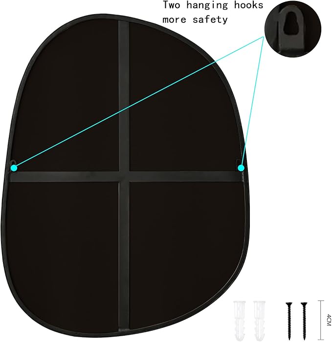 - SIZE AND INSTALLATION: This asymmetrical circular mirror has a diameter of 27"*35". When hanging the wall, hooks are pre-installed behind the backboard, the package includes screws, It is easy to install and hang.Please be sure to hang it safely & carefully with your family.