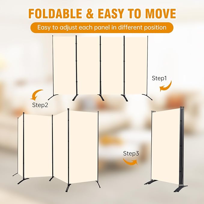 4 Panel Folding Privacy Screens, 6 FT Tall Wall Divider with Metal Frame, Freestanding Room Divider for Office Bedroom Study (4 Panel, Beige)