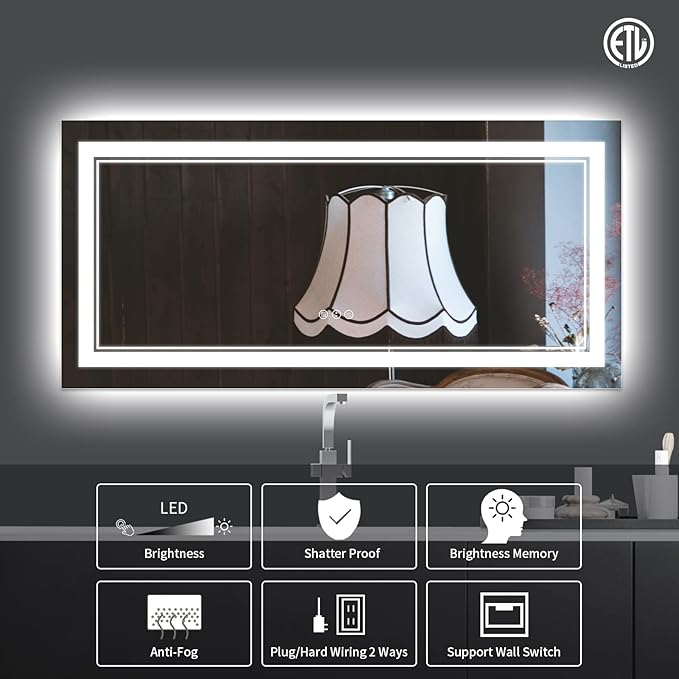 - Anti-Fog: Equipped with anti-fog technology, the anti fog mirror bathroom remains clear and free of condensation even in a steamy bathroom. This bathroom mirror led light is perfect for those who want a clear reflection during and after a shower;