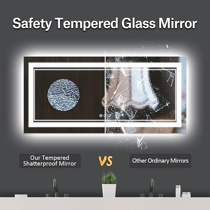 - Tempered glass: ISTRIPMF bathroom mirror is made with high-quality 5 MM tempered glass, which is durable and resistant to breakage. Compared with ordinary glass mirror, shatter-proof, explosion-proof, sturdy and safe to use are the most important feature;