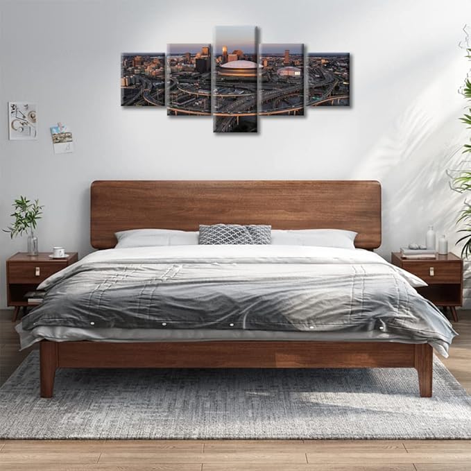 5 Pieces New Orleans Sunset Pictures Canvas Wall Art City Skyline Wall Decorations for Living Room New Orleans Cityscape Print on Canvas House Decor Stretched and Framed Ready to Hang (50"Wx24"H)