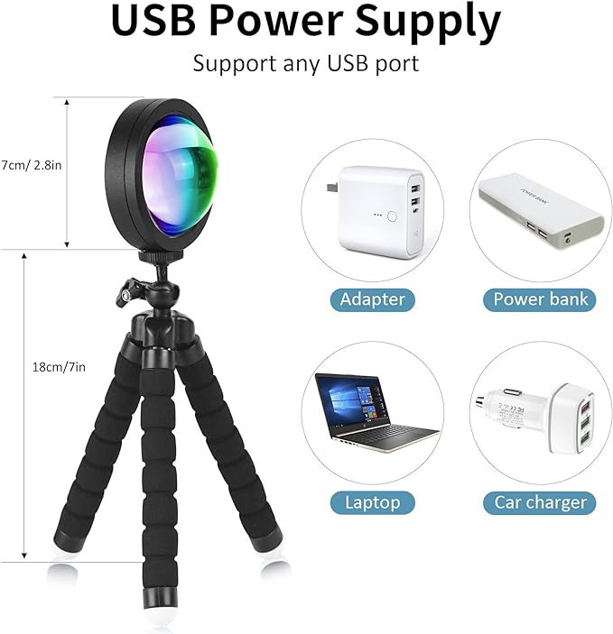 - 【How to Use】-The greater the distance, the greater the projection that the sunset light can throw on the wall or ceiling. The light casts amazing colored circular lights on the wall, ceiling and floor.