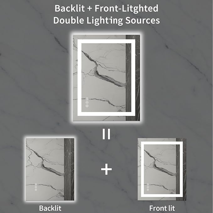 - 【Backlit+Front-lit, Double Lighting Sources】: loaao led bathroom mirror is designed with both backlight and front light; Double lighting sources designed to make the mirror bright enough for doing makeup; skin care; shaving and dressing up; Super bright