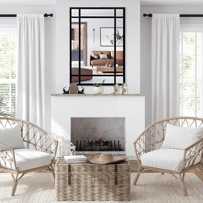 Black Rectangle Mirror, Farmhouse Decorative Wall Mirror for Entryway, Living Room, Bedroom, Hallway, Fireplace, Accent Wall Decor (Black1, 34" x 24")
